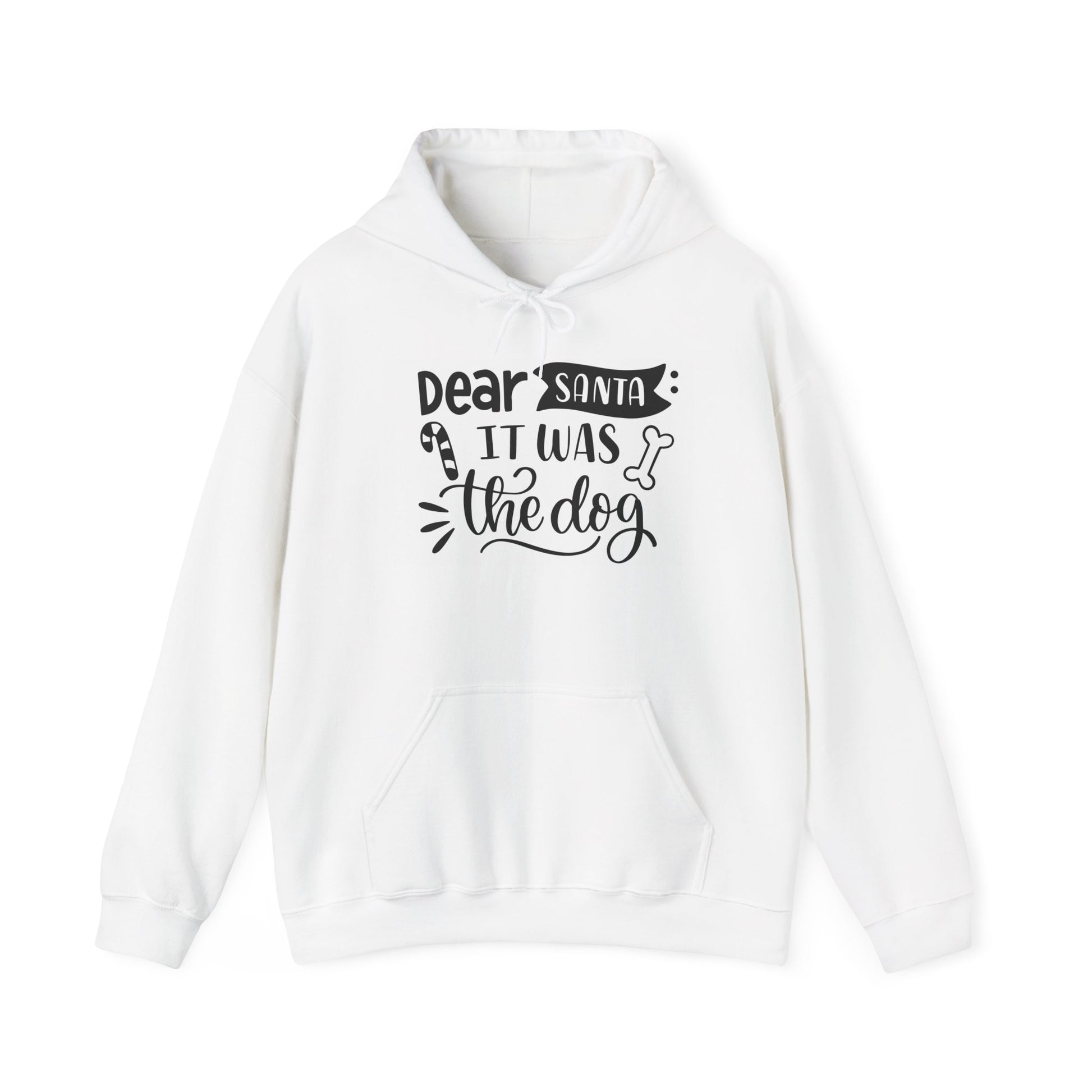Stay cozy and festive with this Santa-themed hoodie featuring the fun phrase 'Santa It Was The Dog'. Perfect for those who love Christmas and enjoy a playful twist on holiday spirit. This unisex hoodie is great for adults looking for a comfortable and stylish way to celebrate the season.